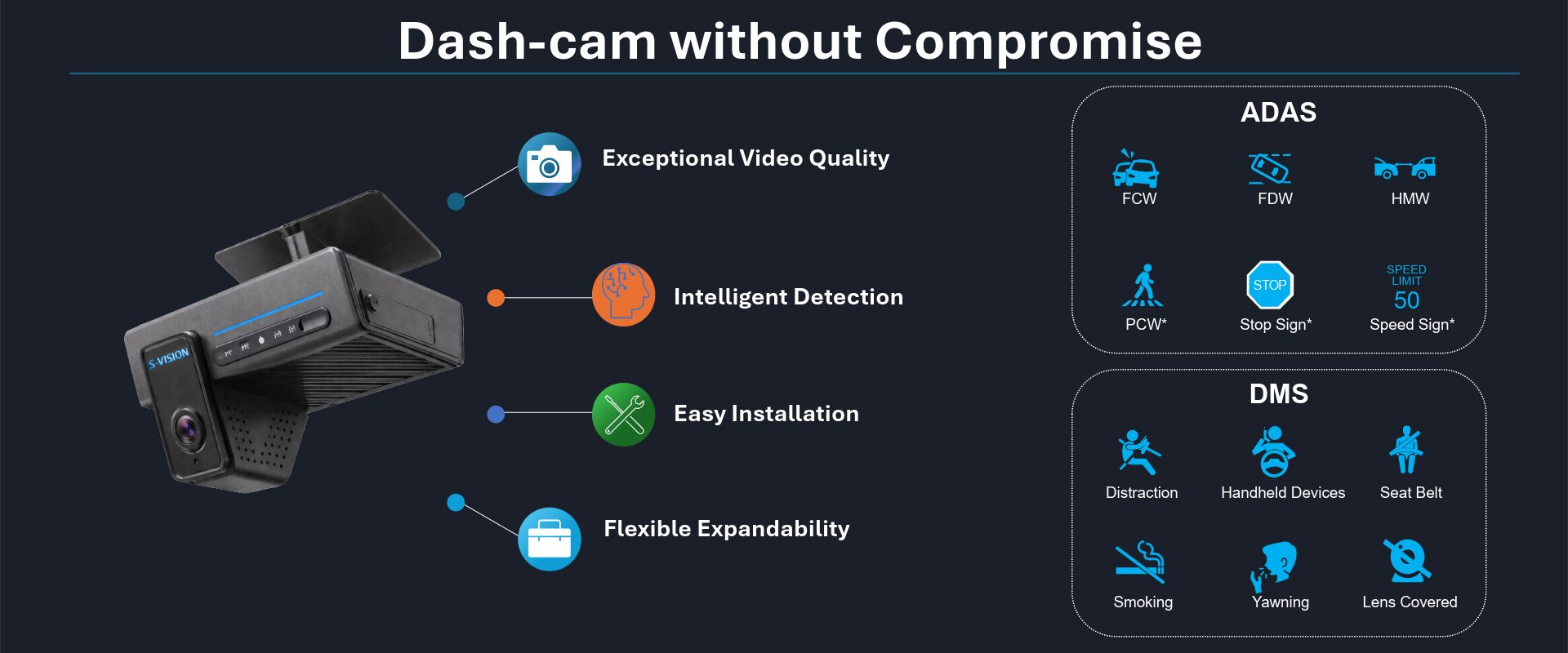 S-Vision’s in-vehicle camera systems, proactively mitigate risk by continuously analyzing driver behavior, identifying emerging risk trends, and enabling targeted coaching through our enterprise software platform; SV Cloud.